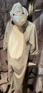 Make a splash this Halloween with our adorable Baby Shark Costume! Perfect for toddlers, this charming one-piece outfit features a soft, shimmery silver fabric with a white belly, built-in fins, and an attached hood shaped like a shark’s head—complete with felt teeth for extra bite!