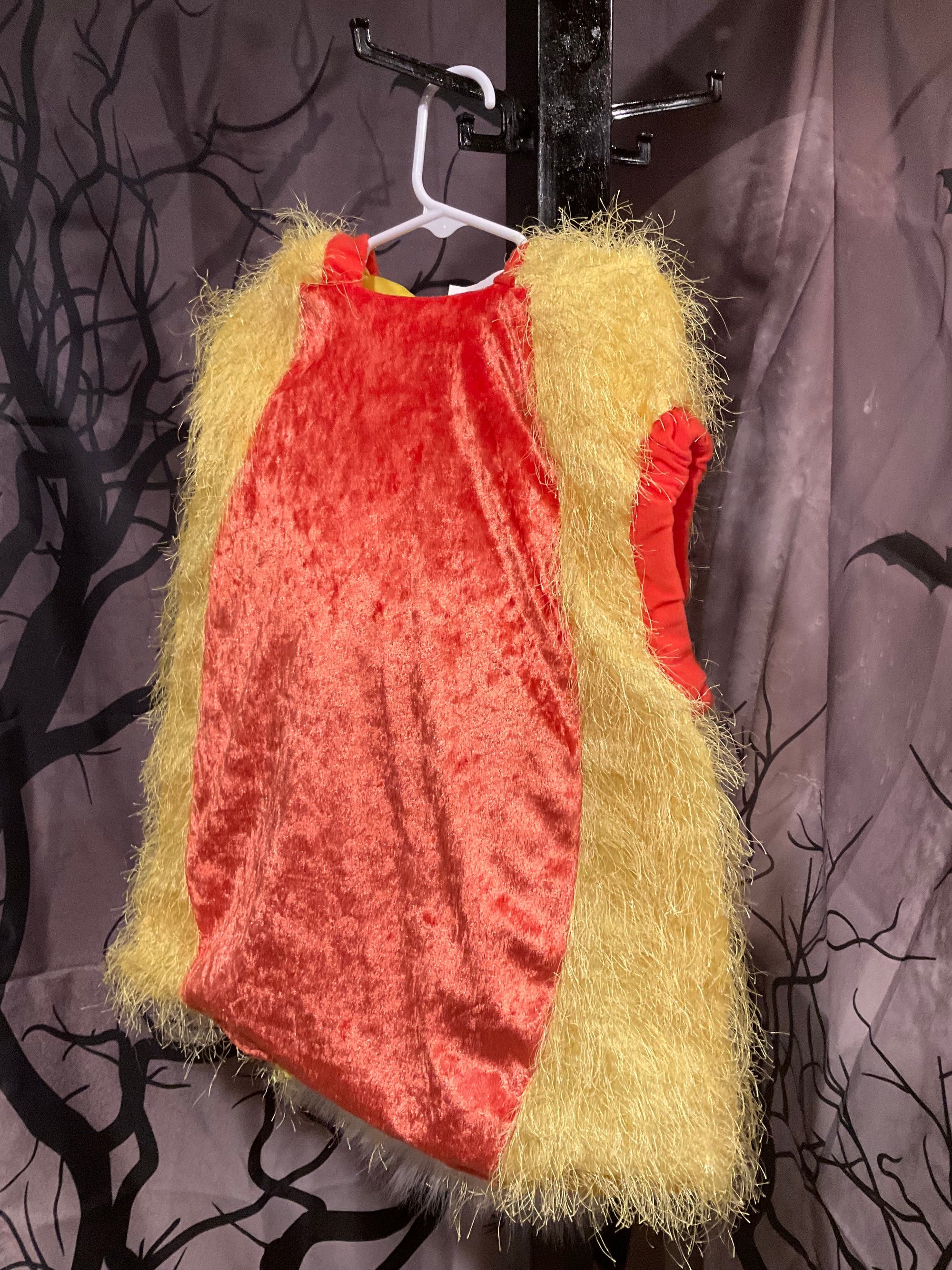 Quack up the fun with this adorable duck vest costume for kids! Designed as a one-piece vest with attached hood this costume features fluffy yellow faux-feathers, a soft orange belly, and an oversized duck bill for a comical, cartoonish look. Cute little tail feather in back. Perfect for Halloween, school plays, or just dress-up fun at home!