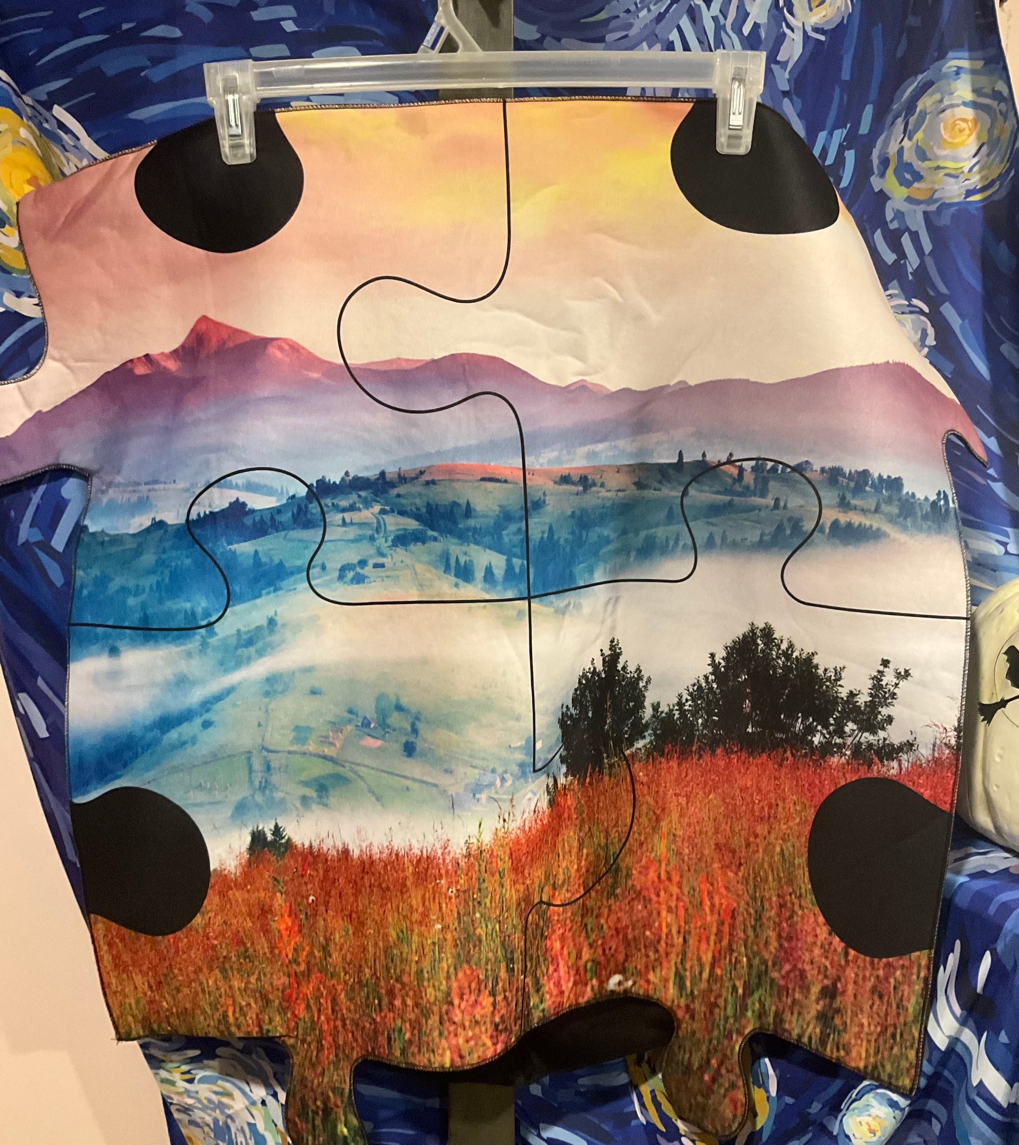 Perfect for parties, Halloween, or any event where you want to show off your connection, this clever costume set by Rasta Imposta features two interlocking puzzle pieces that form a vibrant landscape when paired together. Designed as a fun visual metaphor for how you "fit" with your partner, these costumes are sure to turn heads and spark smiles.