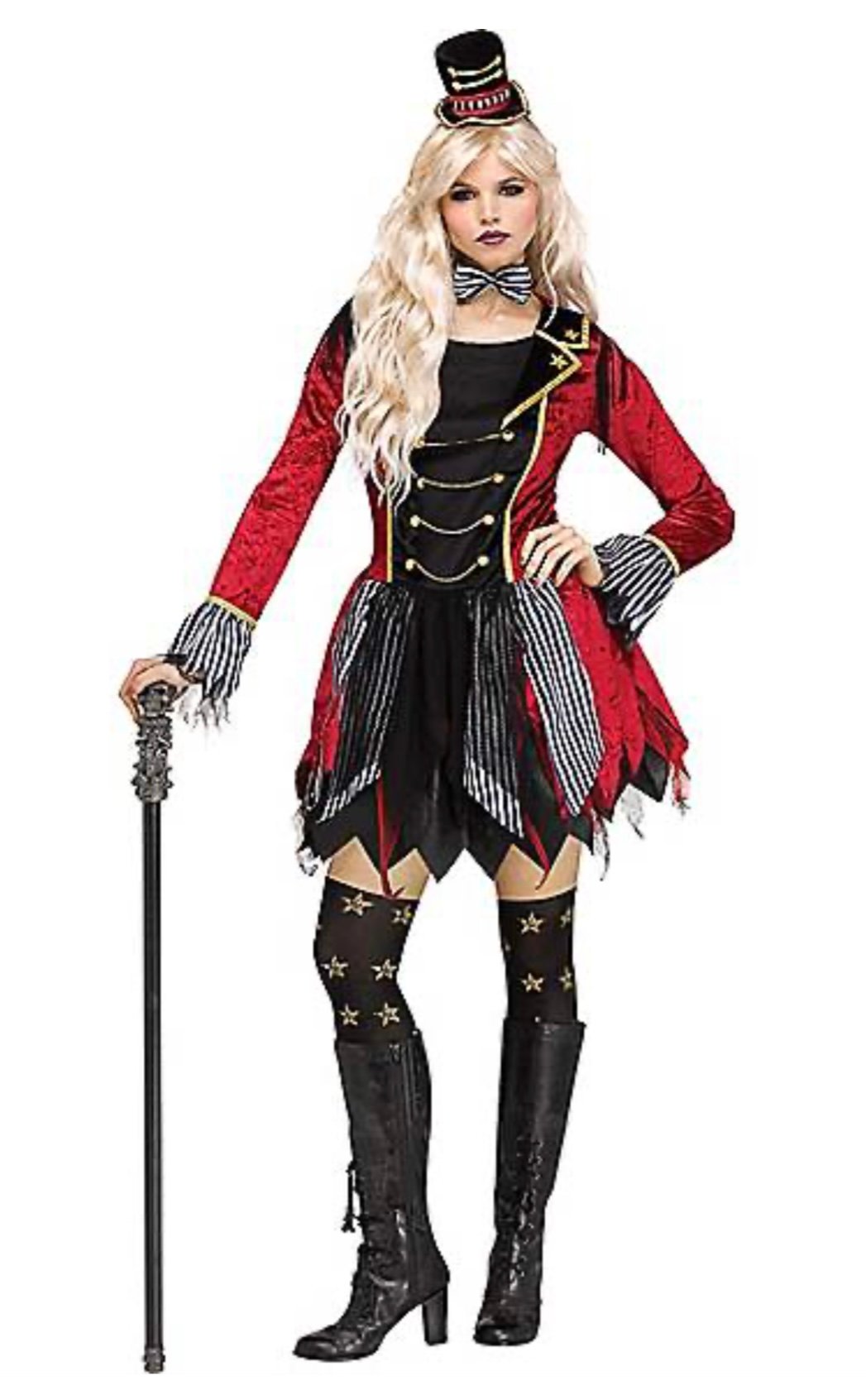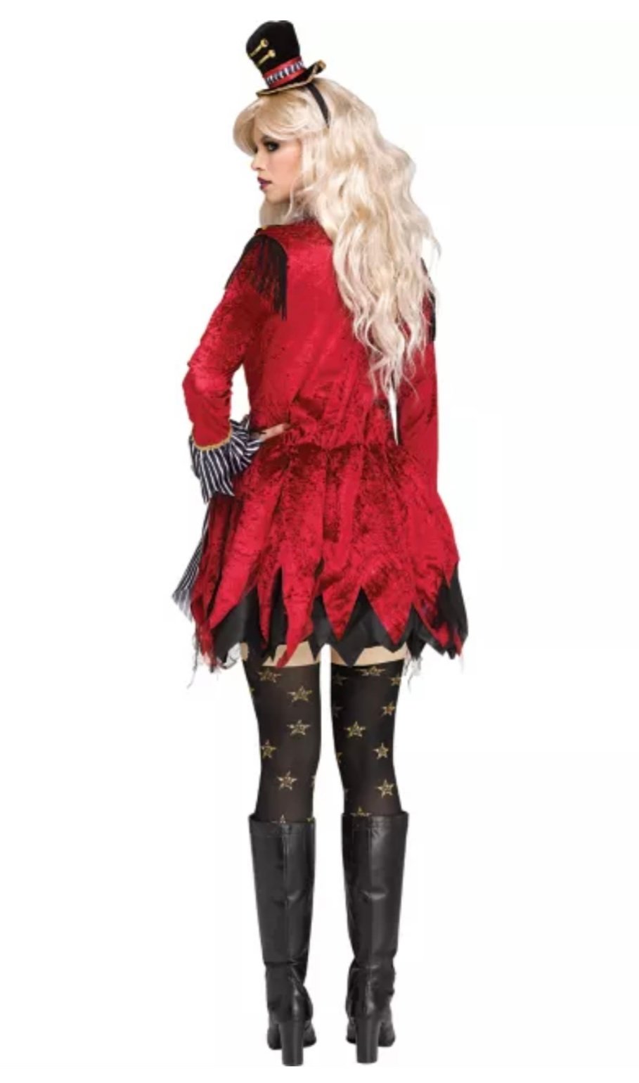 Step right up and steal the show with this striking Dark Ringleader costume, perfect for Halloween, themed parties, cosplay events, or a bold night out. Designed to turn heads and capture attention, this captivating ensemble blends edgy circus flair with dark, dramatic style.