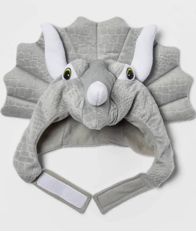 The costume consists of just one piece for quick and convenient dressing — a headpiece designed to look like a triceratops head, complete with three horns, frill and scale detailing. The headpiece secures under your pet's chin with a hook-and-loop closure for easy on and off. This dinosaur pet costume makes a cute costume on its own, but is also great as an accompaniment to your own caveman or dinosaur costume. Prehistoric Pup Perfection!